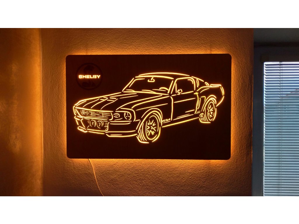 Dřevěný obraz Ford Mustang Shelby s LED podsvícením a stmívačem