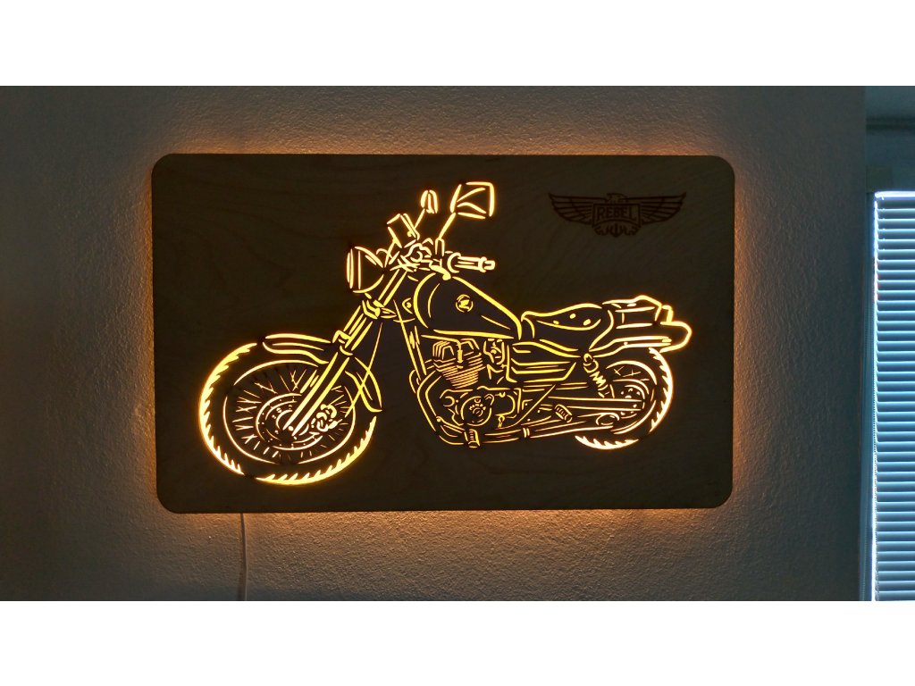 Dřevěný obraz Honda Rebel s LED podsvícením a stmívačem (LOD-15-74-46)