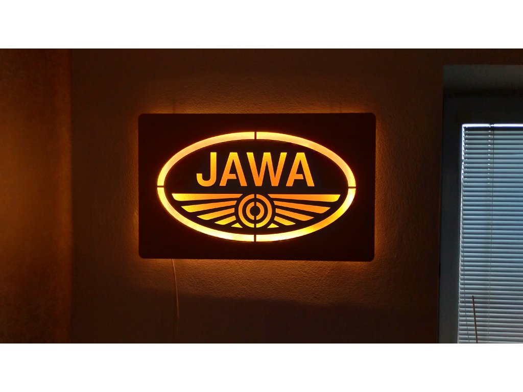 Dřevěný obraz JAWA logo s LED podsvícením a stmívačem