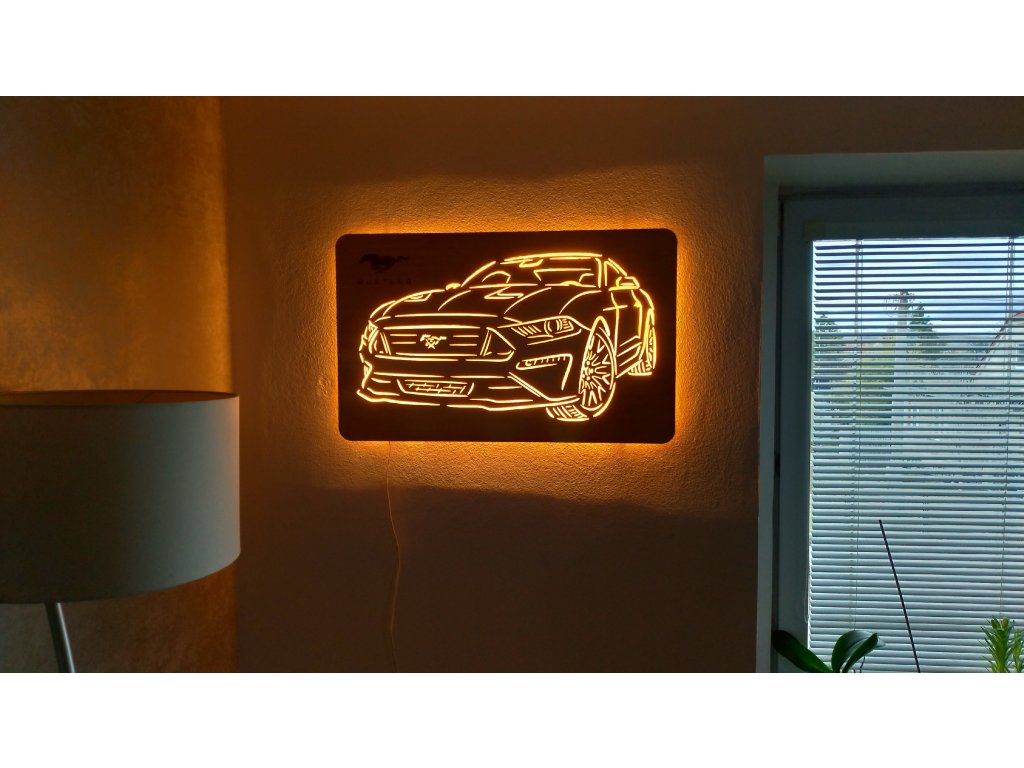 Dřevěný obraz Ford Mustang s LED podsvícením a stmívačem